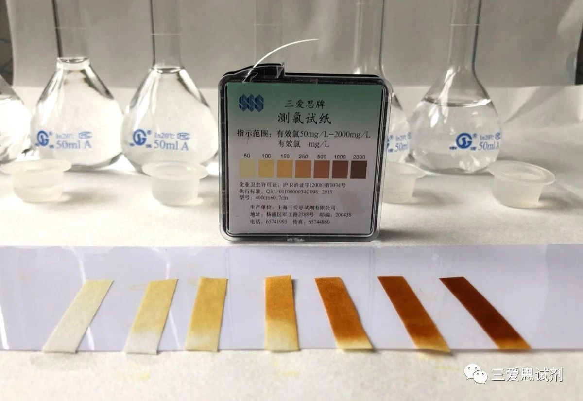 三爱思生产的测氯系列试纸主要用于消毒液中有效氯含量以及消毒后残留有效氯含量测定。可以方便、直观地测得消毒液的浓度是否在合理的范围内,适用于消毒液配制稀释和使用前浓度验证。测氯试纸检测范围涵盖 0-2000mg/L,可用于检测各种用途的含氯消毒剂浓度和污水余氯检测。