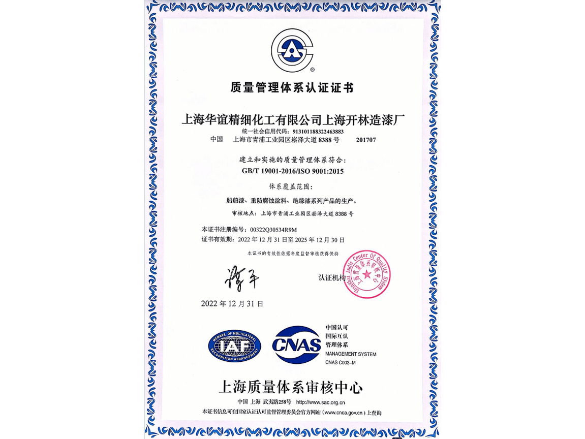 Honorary Qualifications of Shanghai Huayi Coating Co., Ltd.