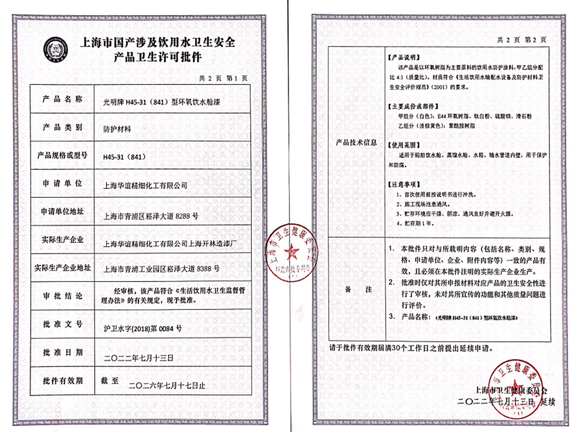 Cabin coating obtained from the Ministry of Health of China Hygiene and Safety Product Hygiene License -