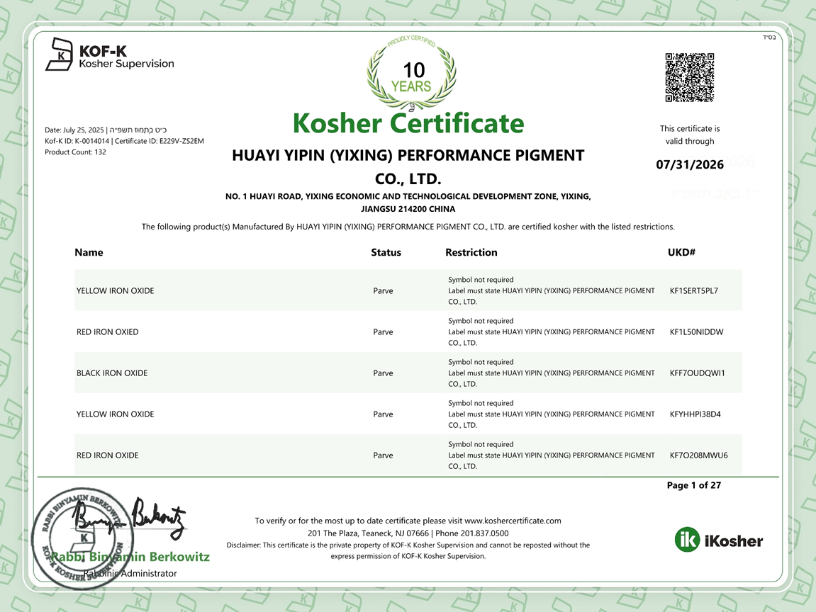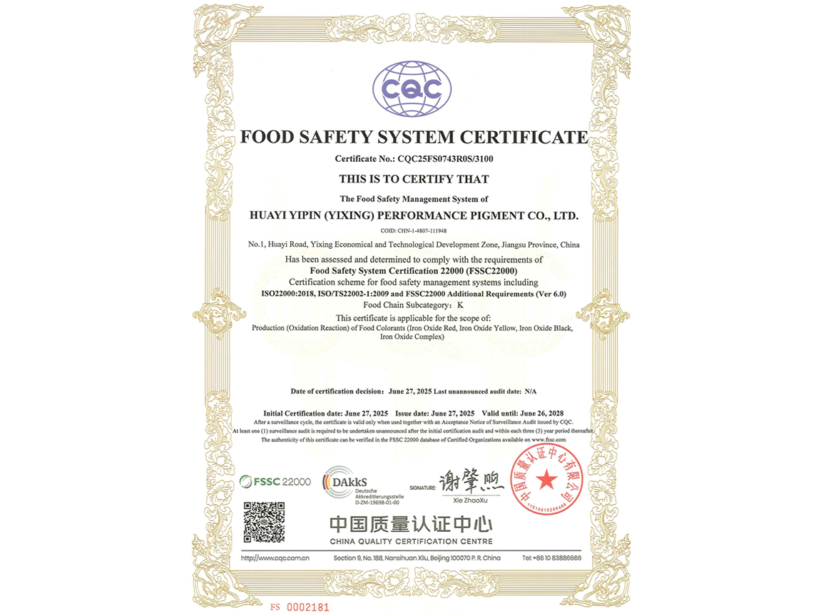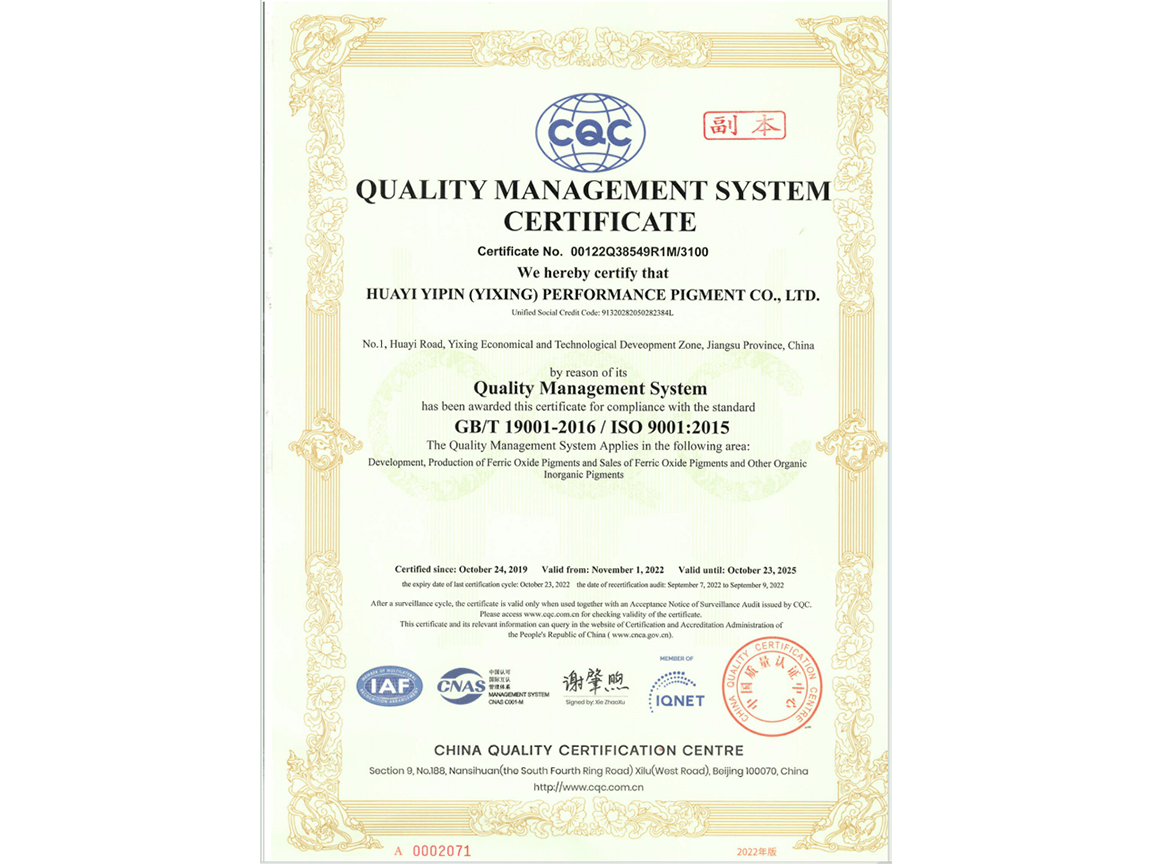 Honorary qualifications of Huayi Yipin(Yixing)Performance Pigment Co., Ltd.